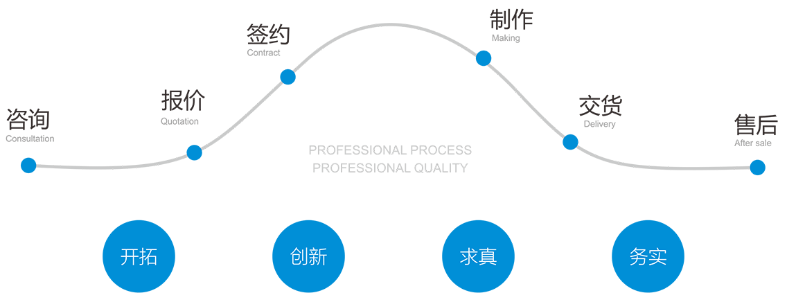 服務宗旨—熱情接待新客戶、確切了解顧客需求;嚴格質量過程控制,確保交貨周期,及時進行質量跟蹤,迅速處理質量異議。